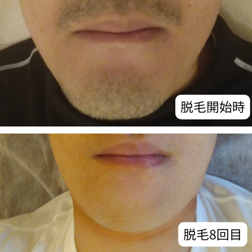 画像下は脱毛8回目施術前の様子です。毛が減って青髭がほとんど分からなくなっています。